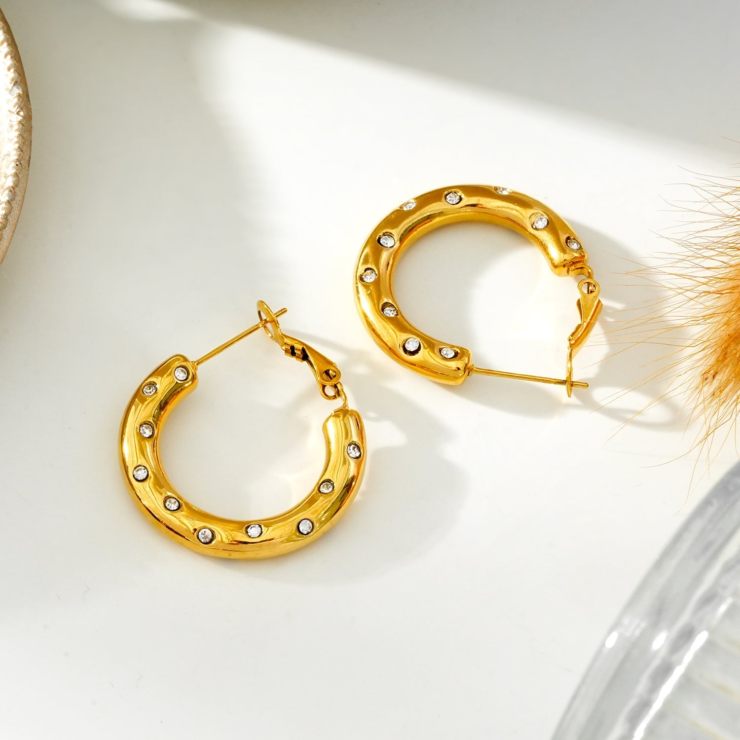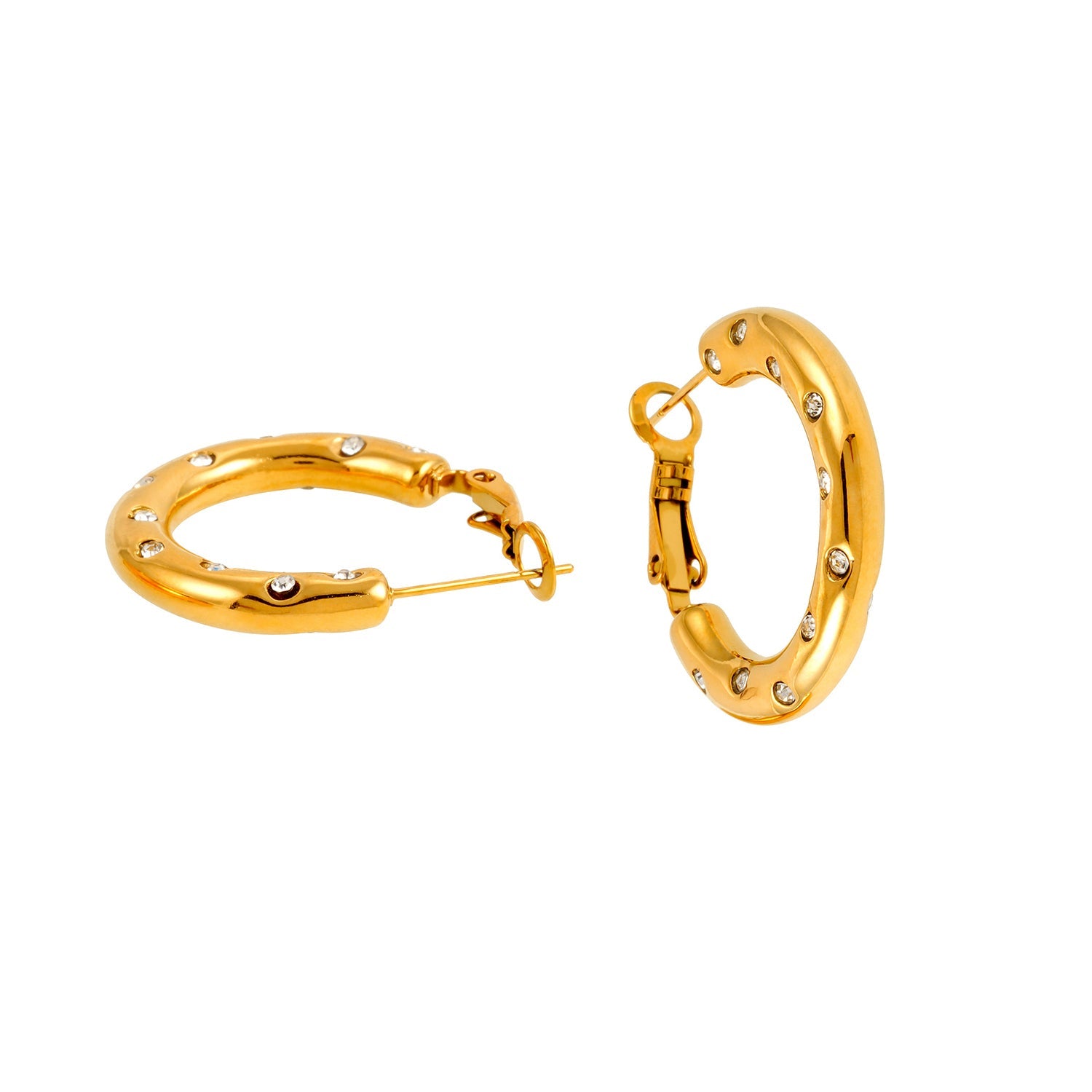 Mid-Width Hoops Embedded with Zirconia Gemstones
