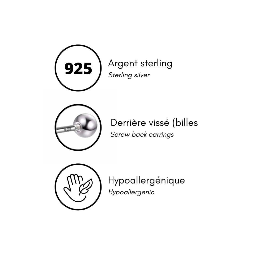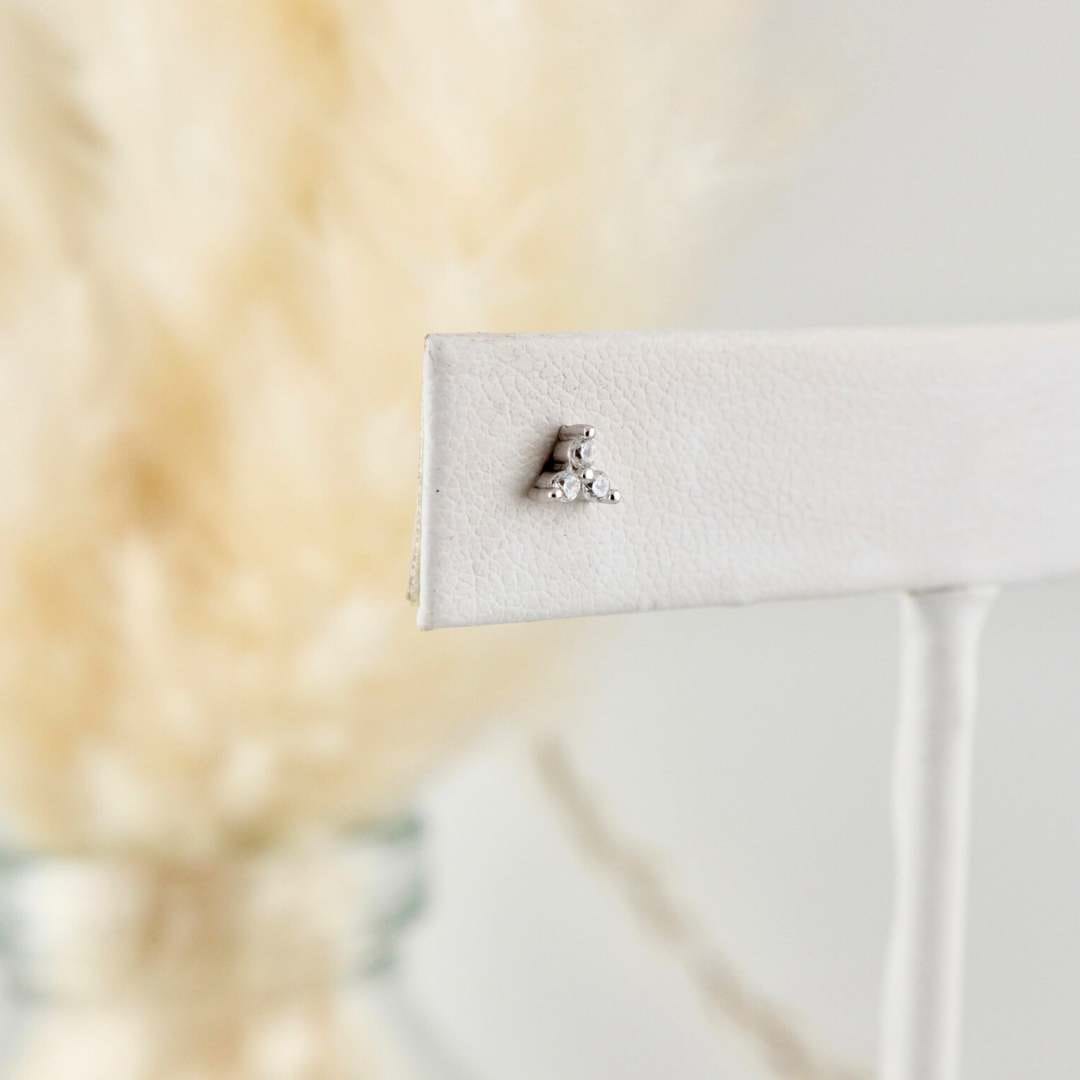 Boucles d'oreilles Trinity avec zircons cubiques sertis sur argent sterling 925, avec tiges et billes vissées à l'arrière. Elles sont parfaites et confortables pour un enfant, mais également pour un adolescent ou adulte.