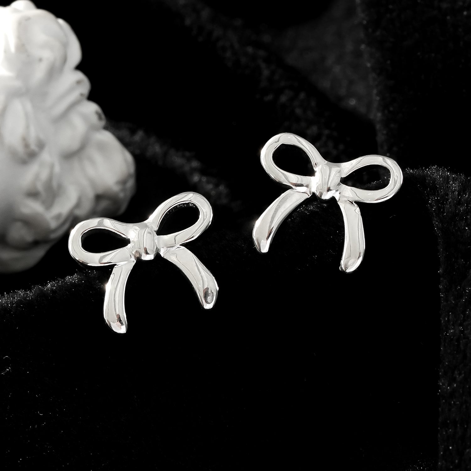 The intricate bow design features textured curves and polished edges, reflecting light beautifully for a subtle yet eye-catching effect. Lightweight and comfortable, the studs are secured with a reliable butterfly back, ensuring they stay in place throughout the day.