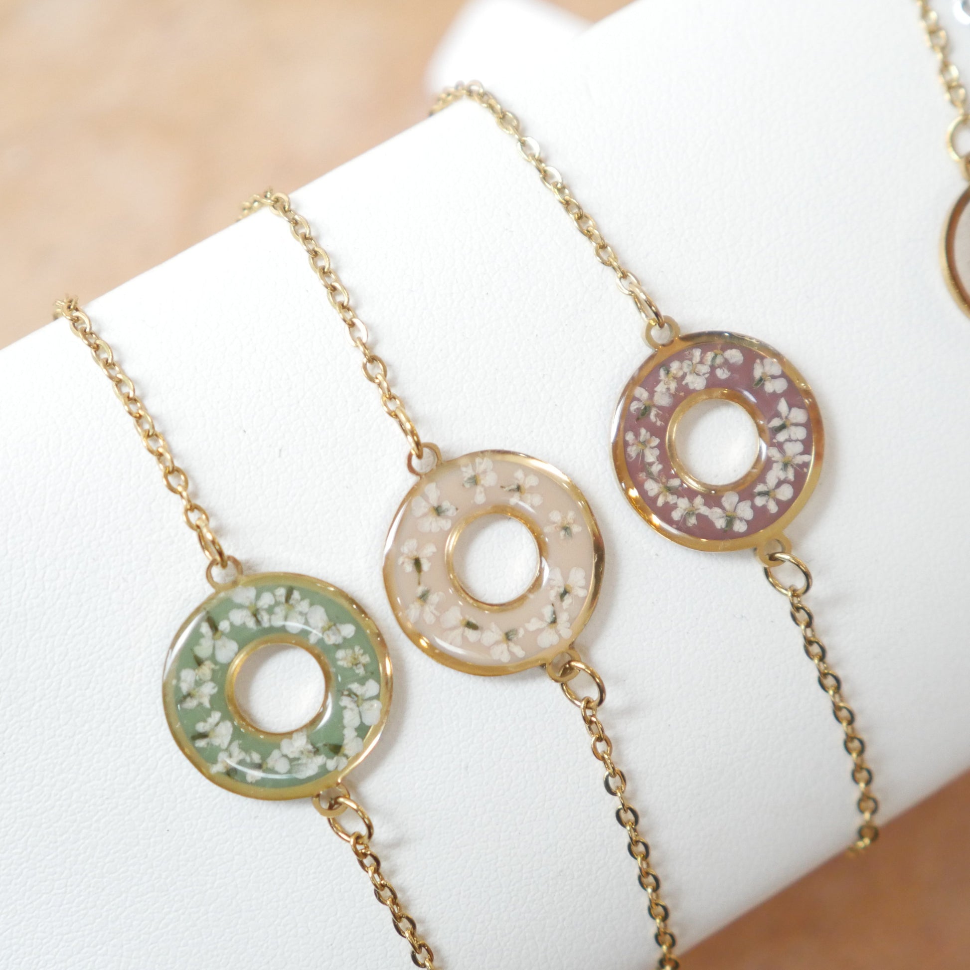 Bracelet en résine incrustée de fleurs de carottes séchées. Léger et délicat !