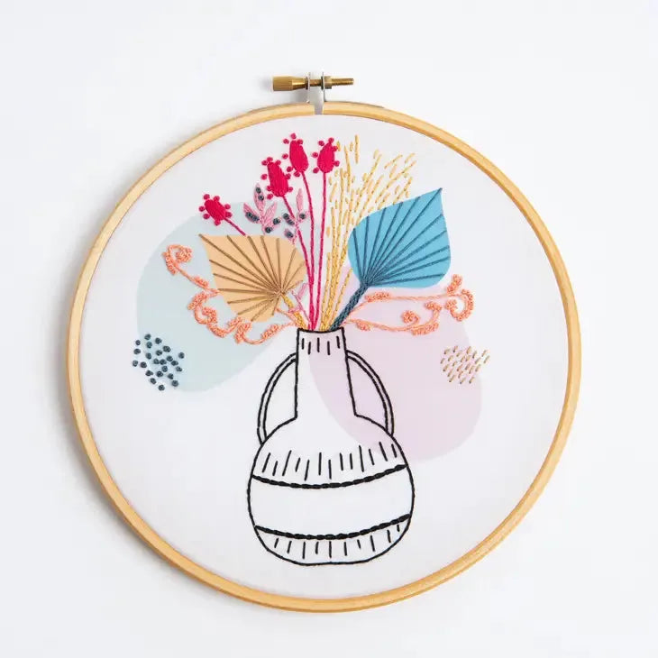 Each kit comes with everything you need including a detailed pattern and guide, DMC threads, wooden hoop, needle and pre-printed fabric. Simply pop the fabric in the hoop and you can get started right away, no previous craft experience needed.