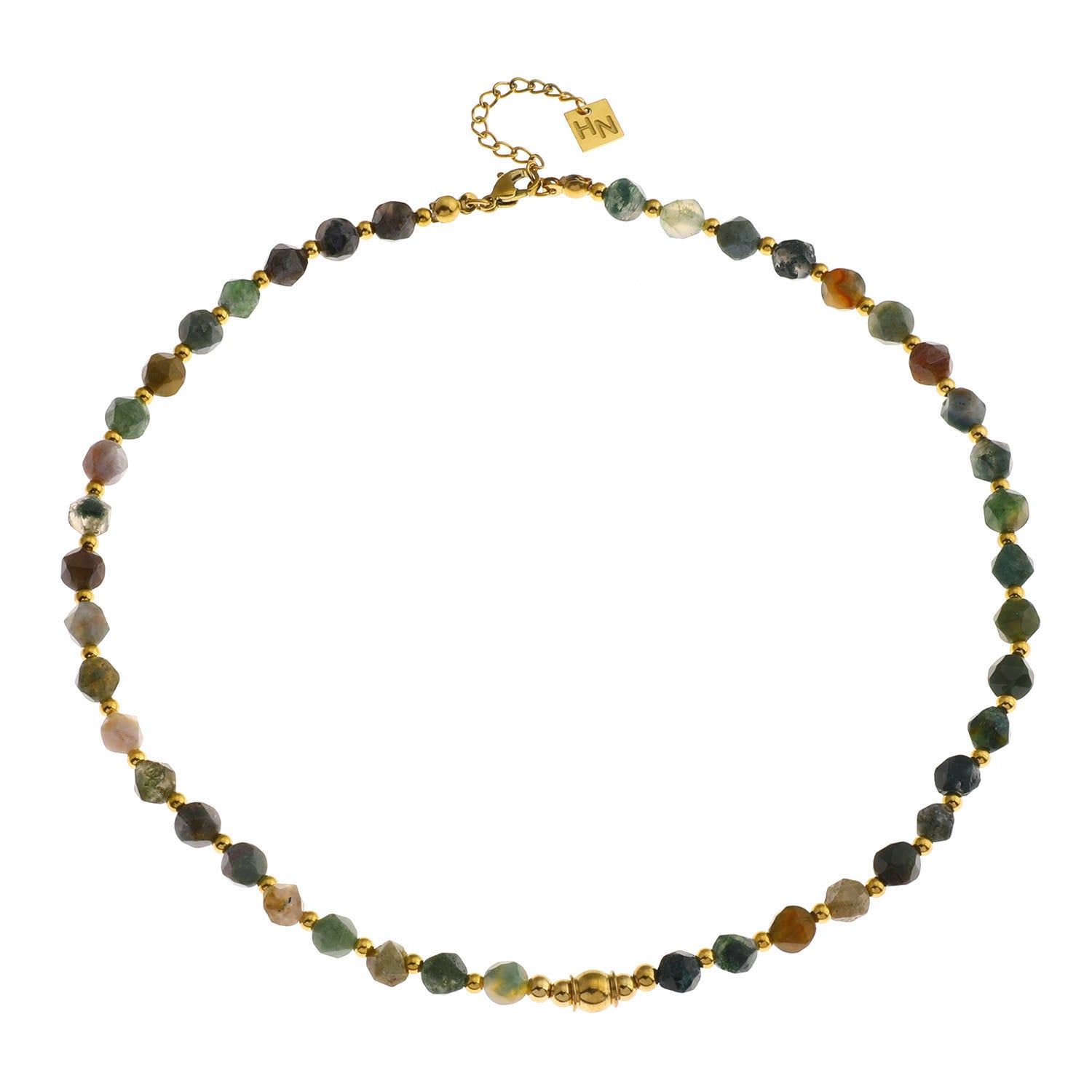 JULIETTA: Indian Agate Stones & Gold Beaded Necklace