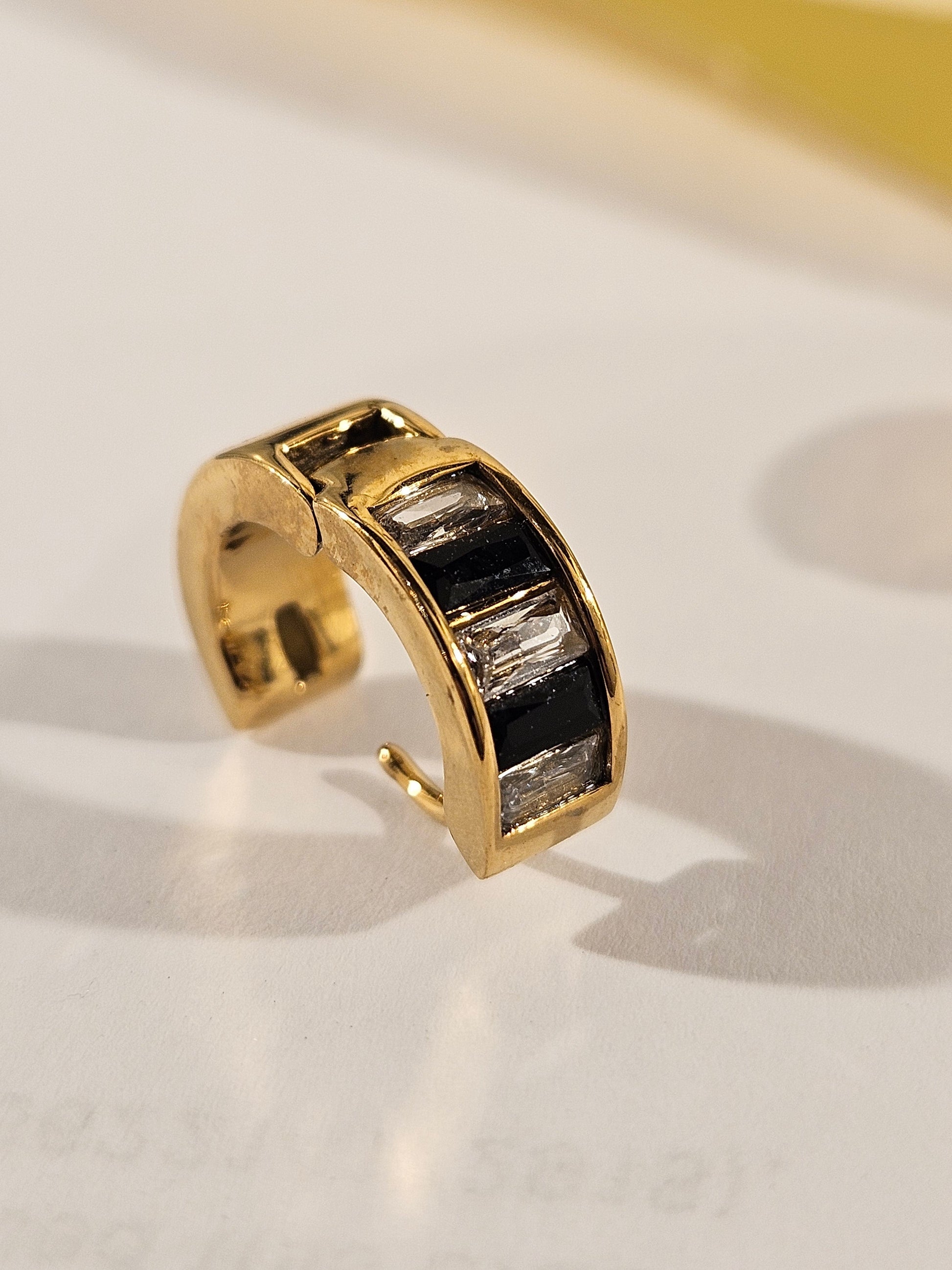 The striking combination of black and white embedded zirconia creates a captivating contrast that draws attention to the intricate details of the earrings. This monochromatic palette adds a sense of sophistication, making them a statement accessory that transcends trends.