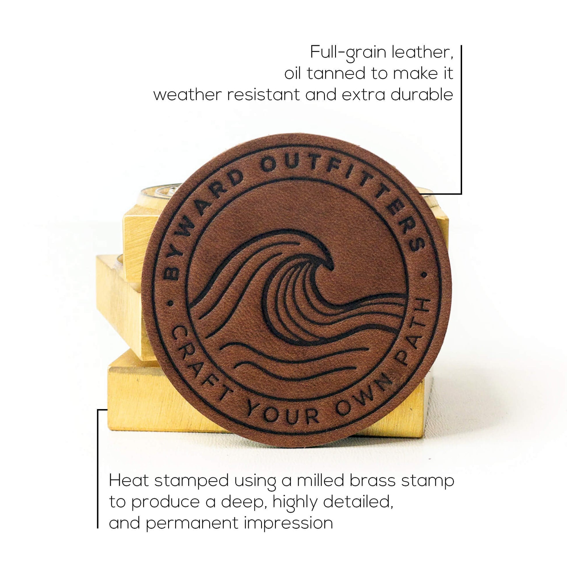 Capture the essence of the ocean with our "Rolling Waves" patch. The design is heat-stamped into full-grain leather, producing a deep, highly detailed and permanent impression on the leather that doesn't fade over time like a lasered patch.