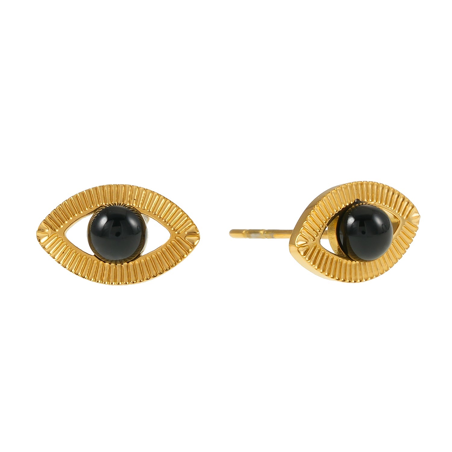 Gold Evil Eye Studs with Black Onyx Embellishment
