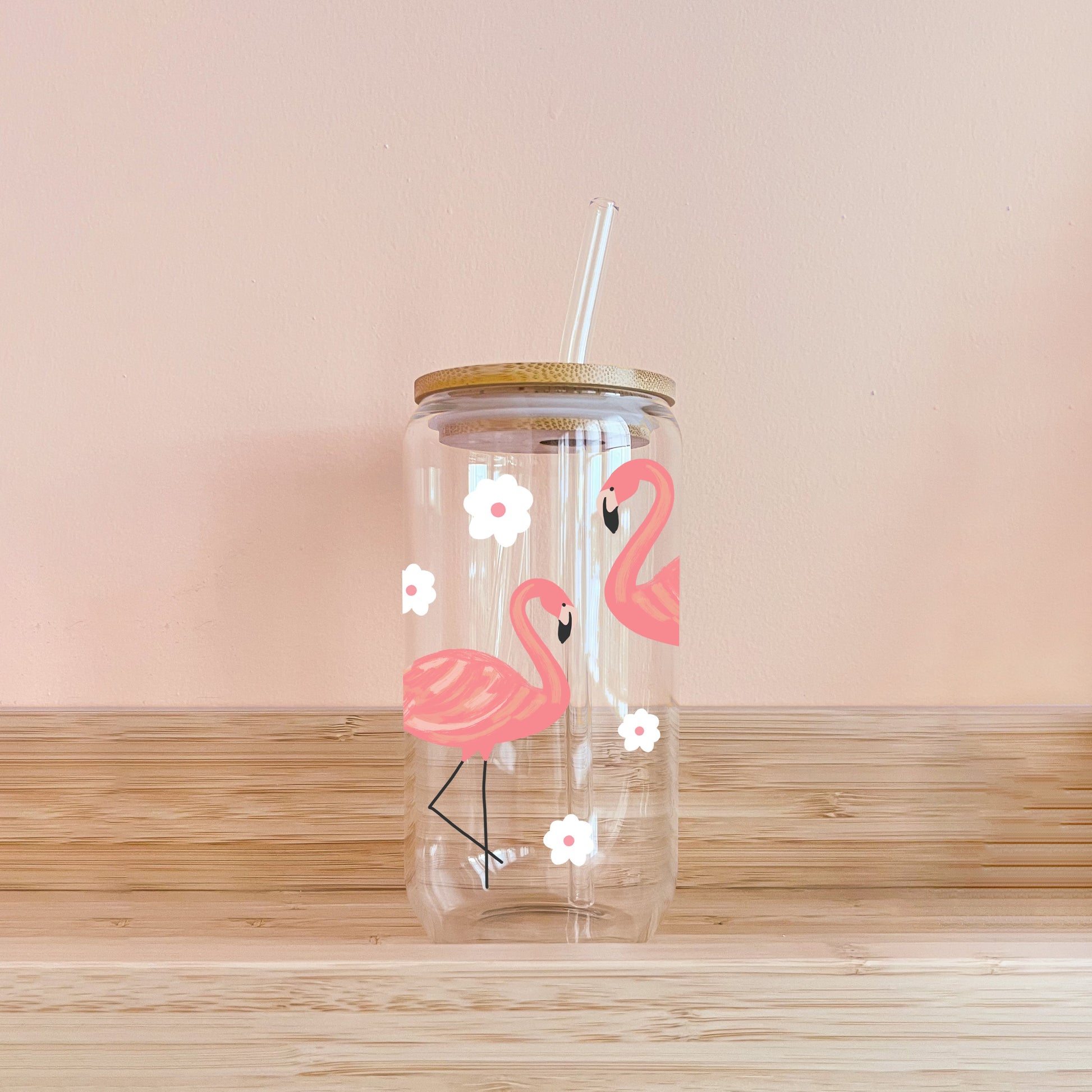 🌸 Verre 16oz avec couvercle en bambou et paille en verre