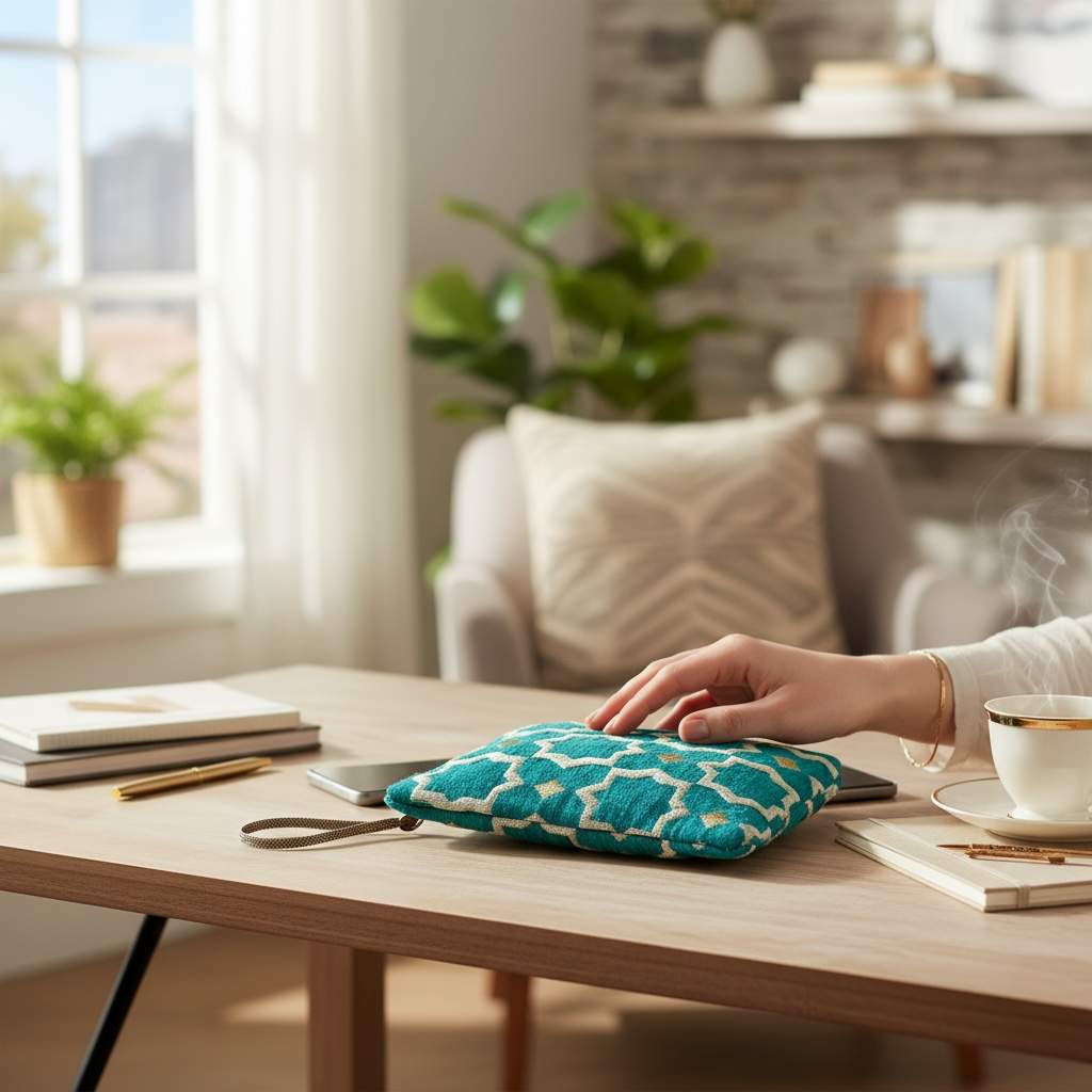 Elevate your essentials with the Brocade Turquoise Pouch, a handmade treasure from Morocco.