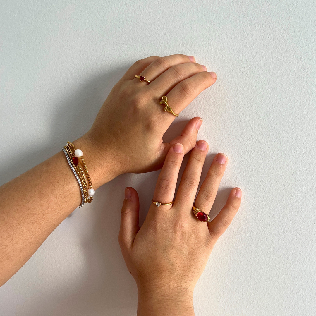 An everyday must! Add this classic bow ring to your accessory collection for a timeless touch to any outfit. Want to up your stack and feel coquette? Start with this bow ring. Wear it all day long - your future favorite ring is waterproof, non-tarnish and hypoallergenic!