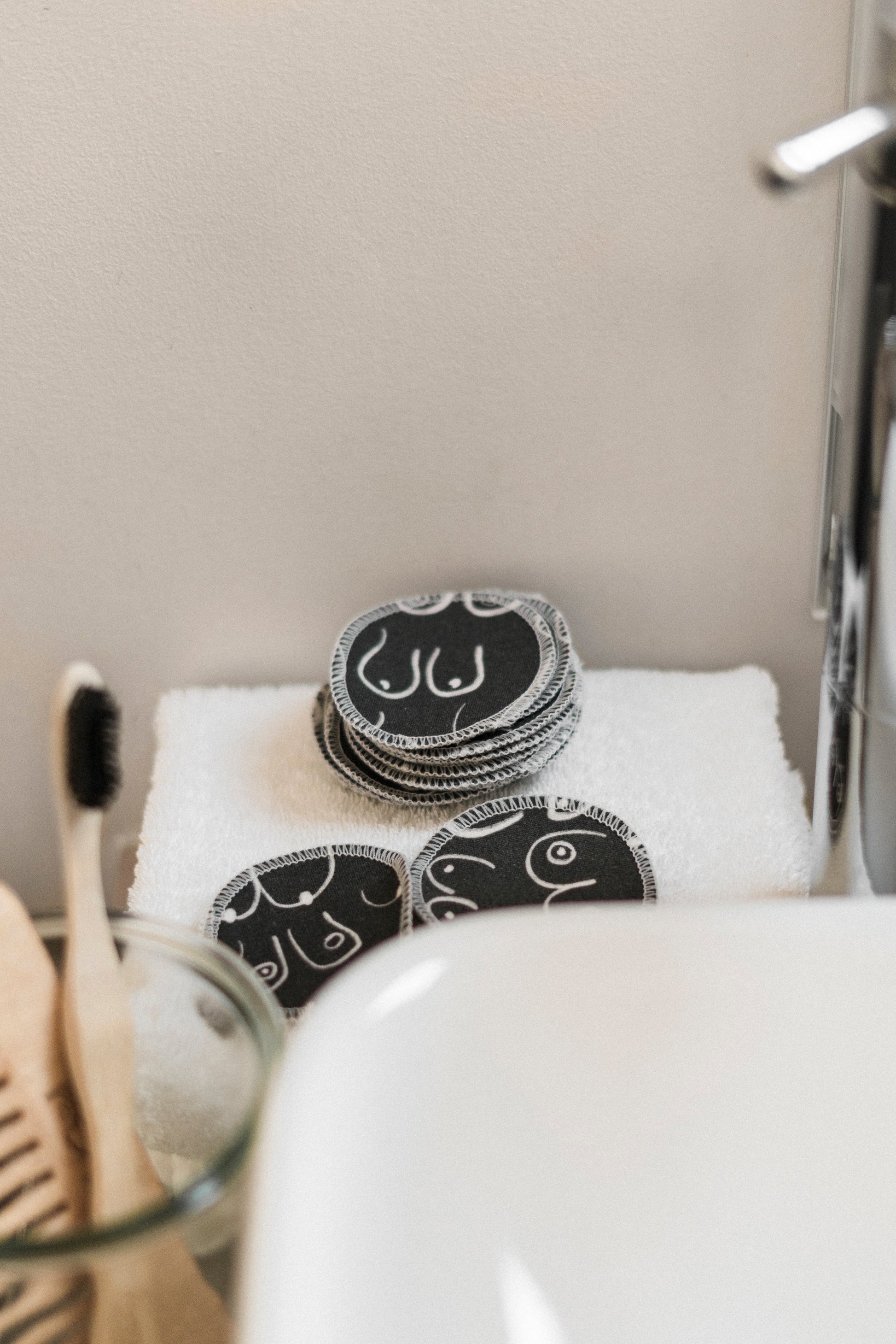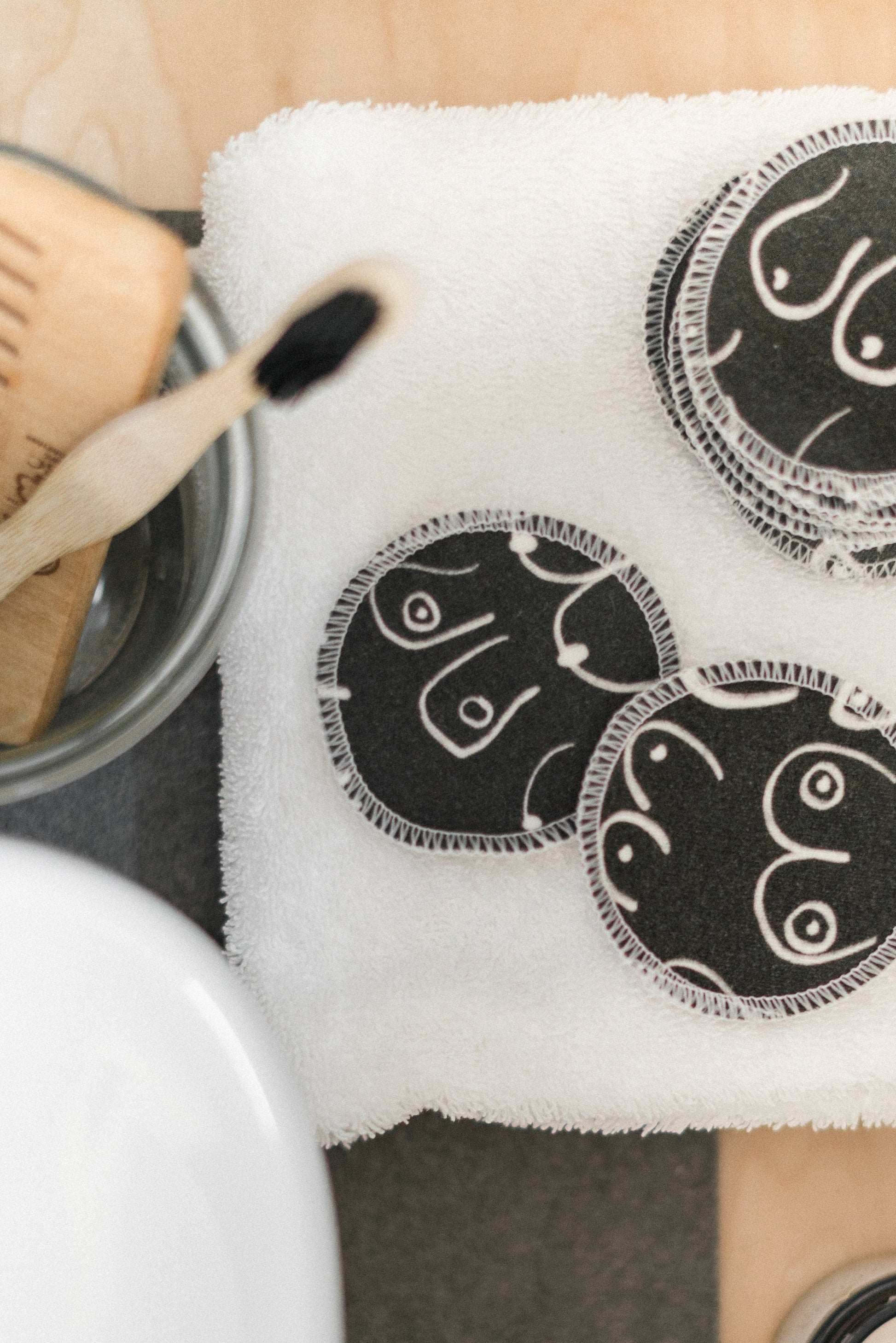 NOTE: Please note that all cotton rounds are handmade by us in our Toronto studio. Product may differ slightly in appearance and colour depending on the batch. Additionally, our cotton rounds can be used to remove makeup however, as with all reusable cotton rounds, heavy makeup removal may stain the cotton rounds.