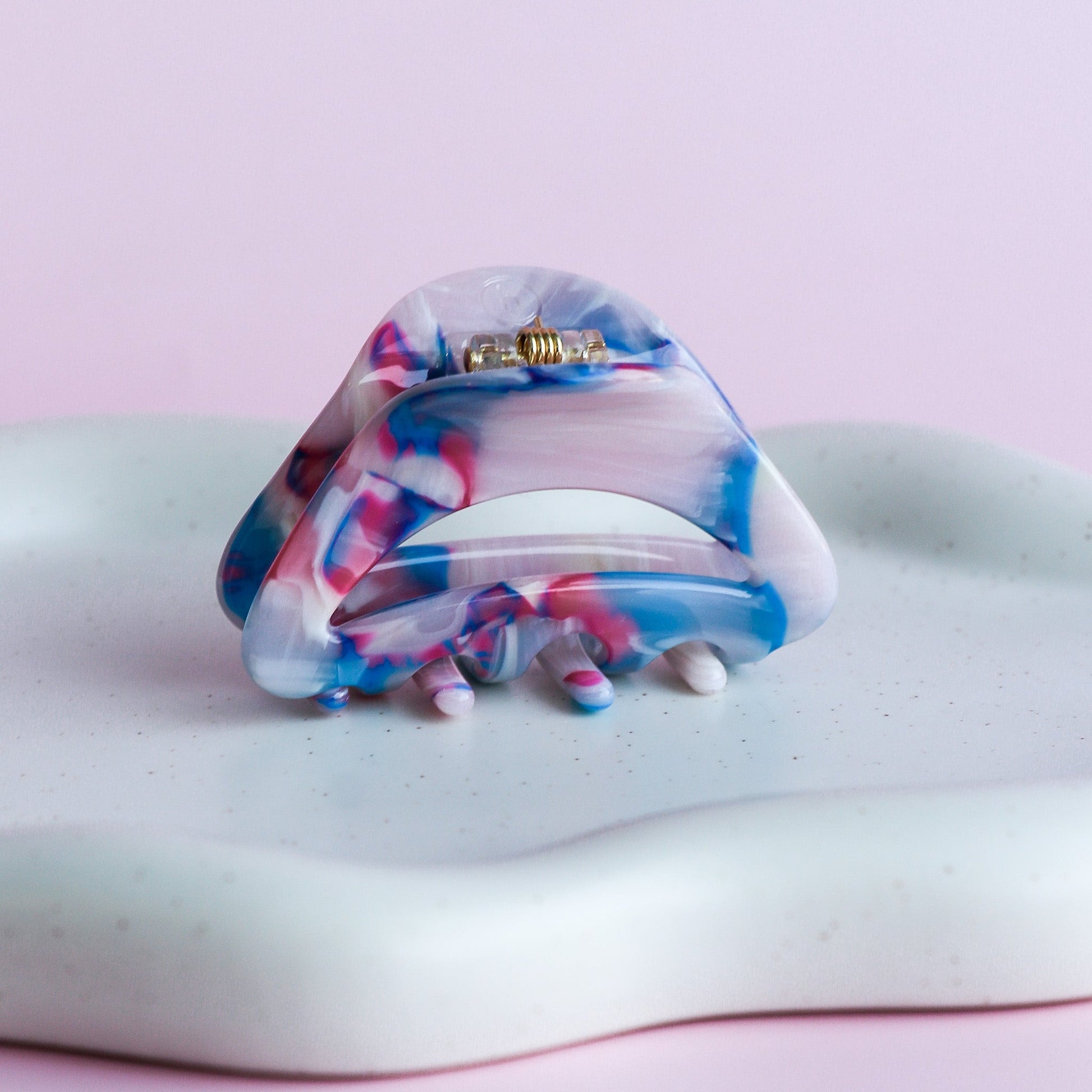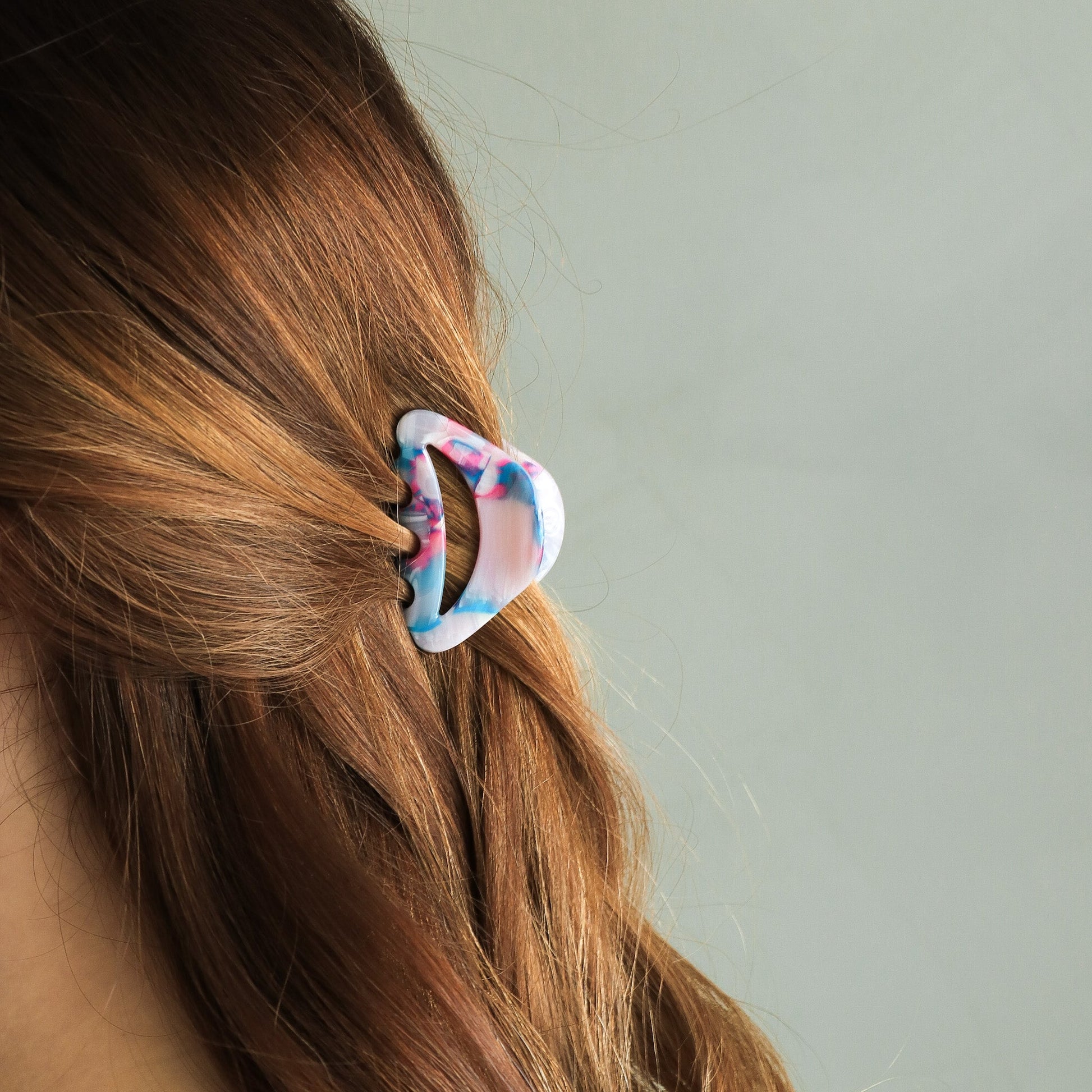 Pince à cheveux arrondie avec découpe au centre. Parfaite pour les demi-couettes.