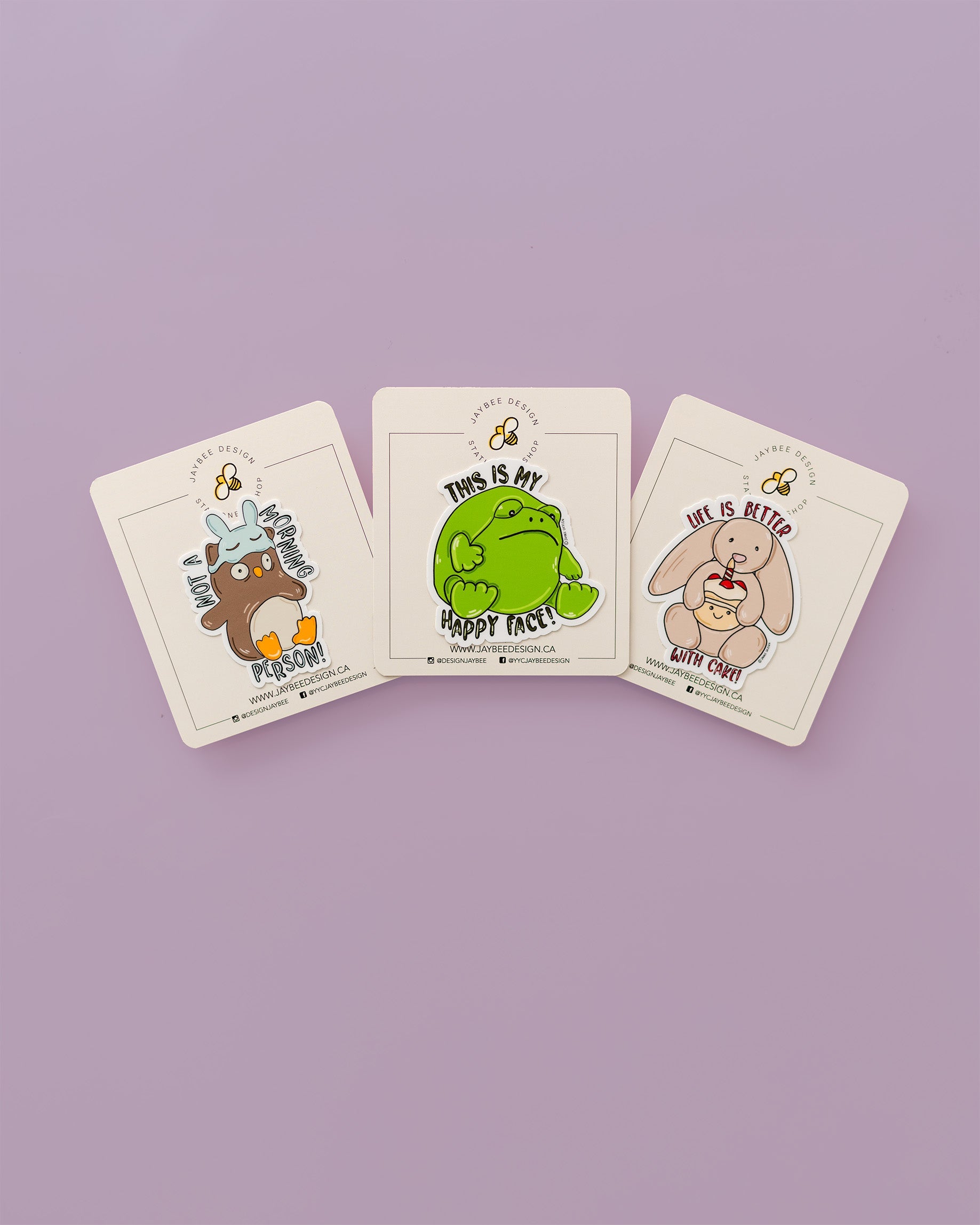 • Stickers are all packaged on a cardstock backing and placed in a cardboard envelope with “Please Do Not Bend” labelling.