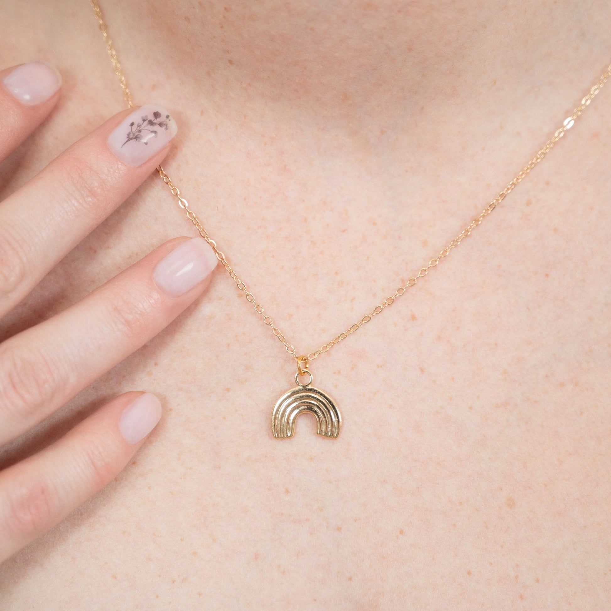 A little reminder that light always follows the storm. Our Rainbow Necklace features a minimalist arched charm — a subtle symbol of hope, joy, and new beginnings.