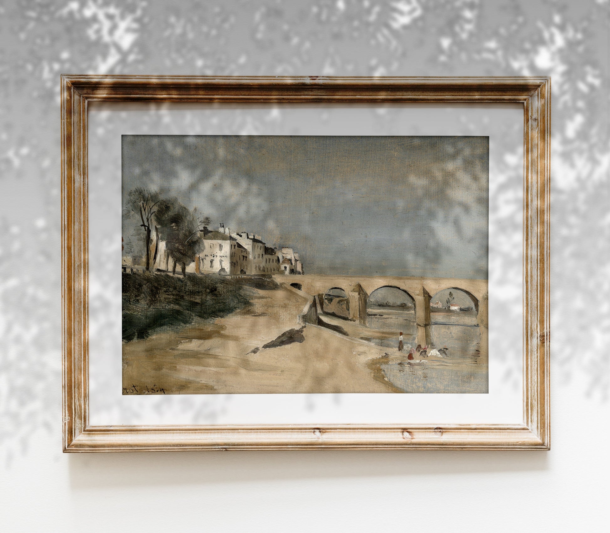 Hyggely Vintage Art Print Collection - Antique Arch Bridge Landscape Painting